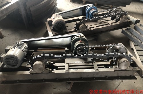 QXG-200A 240A 250A 300A驱动这种驱动装置的动力通过调速电机经皮带传至摆针轮减速器,再由减速器经链条链轮传至驱动轮主轴,后由驱动轮带动链条,再由驱动链条上的拨爪推动输送链条的十字节传输悬挂物件前行。当运行中出现故障面造成牵引力超载时,本驱动装置上所设的可调式安全离合器瞬即自动脱开啮合,同时其驱动头架将作逆时针转动压迫行程开关,使调速电机停转和速个线路停止运行。故障排除后,驱动头架转回原处,离合器端重新啮合。此时不作任何调速即能开机正常运行。该离合器出厂时已将弹簧力调到额定牵引力的100%左右,用户可根据要求自行作补充调速,但最大牵引力不得超过额定值的125%。特别注意,绝不能将弹簧压死,以防失去机械保护功能。